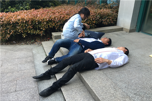13:55分,全部人员疏散至安全区域,对部分吸进浓烟的员工联系医务人员前来进行救治。