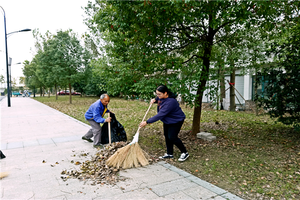 11月16日,物业服务中心组织室外保洁员工进行技能比武活动,并清扫体育场与生活区之间主干道、绿化带,行政楼停车场以及主干道的落叶。