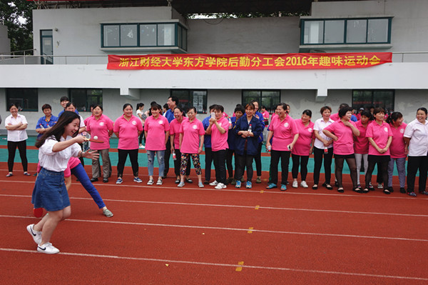 5月23日下午,东方学院体育场内欢声如潮,后勤第二届趣味运动会正进行得如火如荼,来自后勤的170多名员工组成了5支参赛队伍,在抢种抢收、特色肉夹馍、托乒乓球接力、眼疾手快、同舟共济五项集体项目中展开了激烈而有趣的竞争。