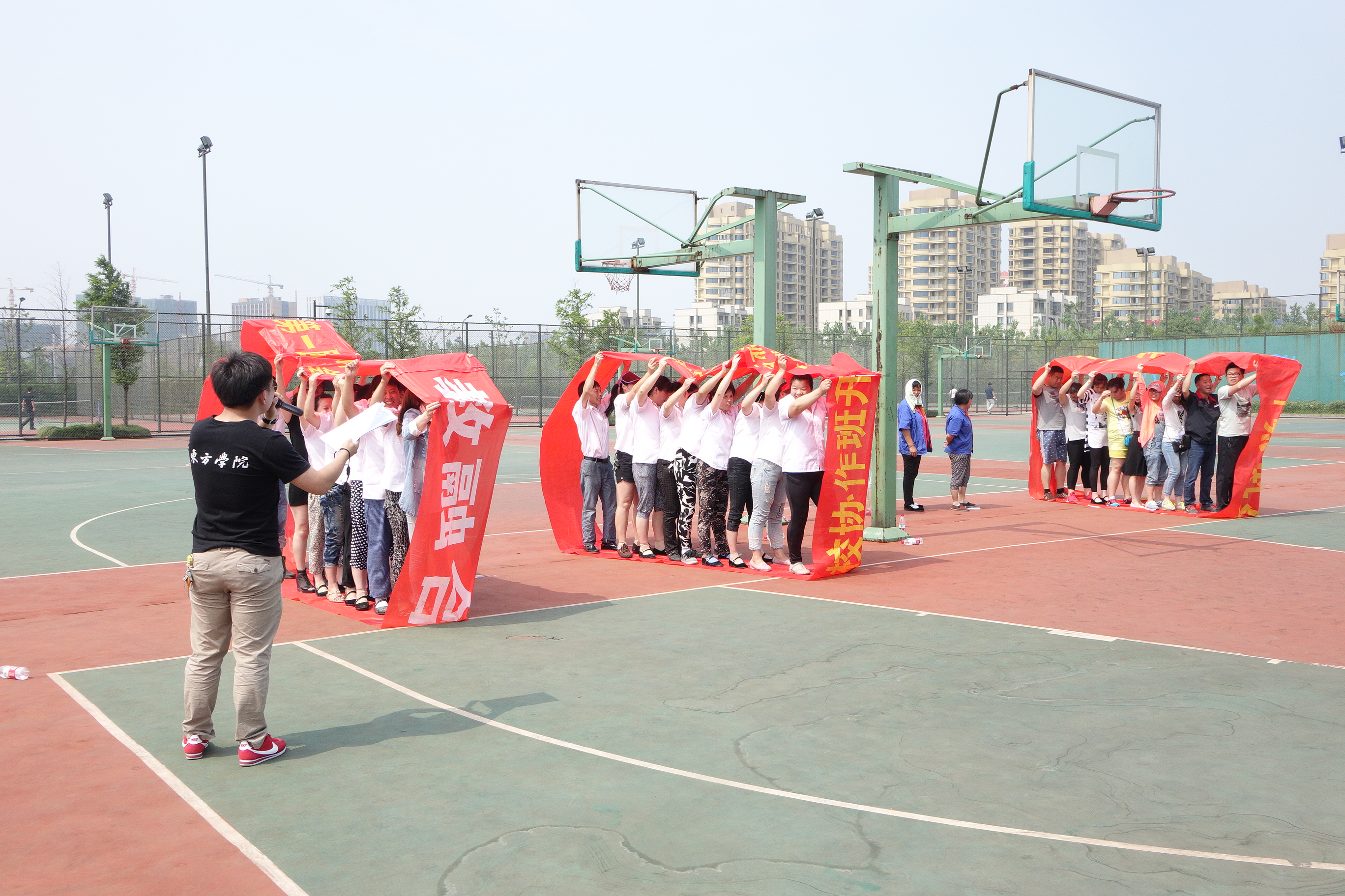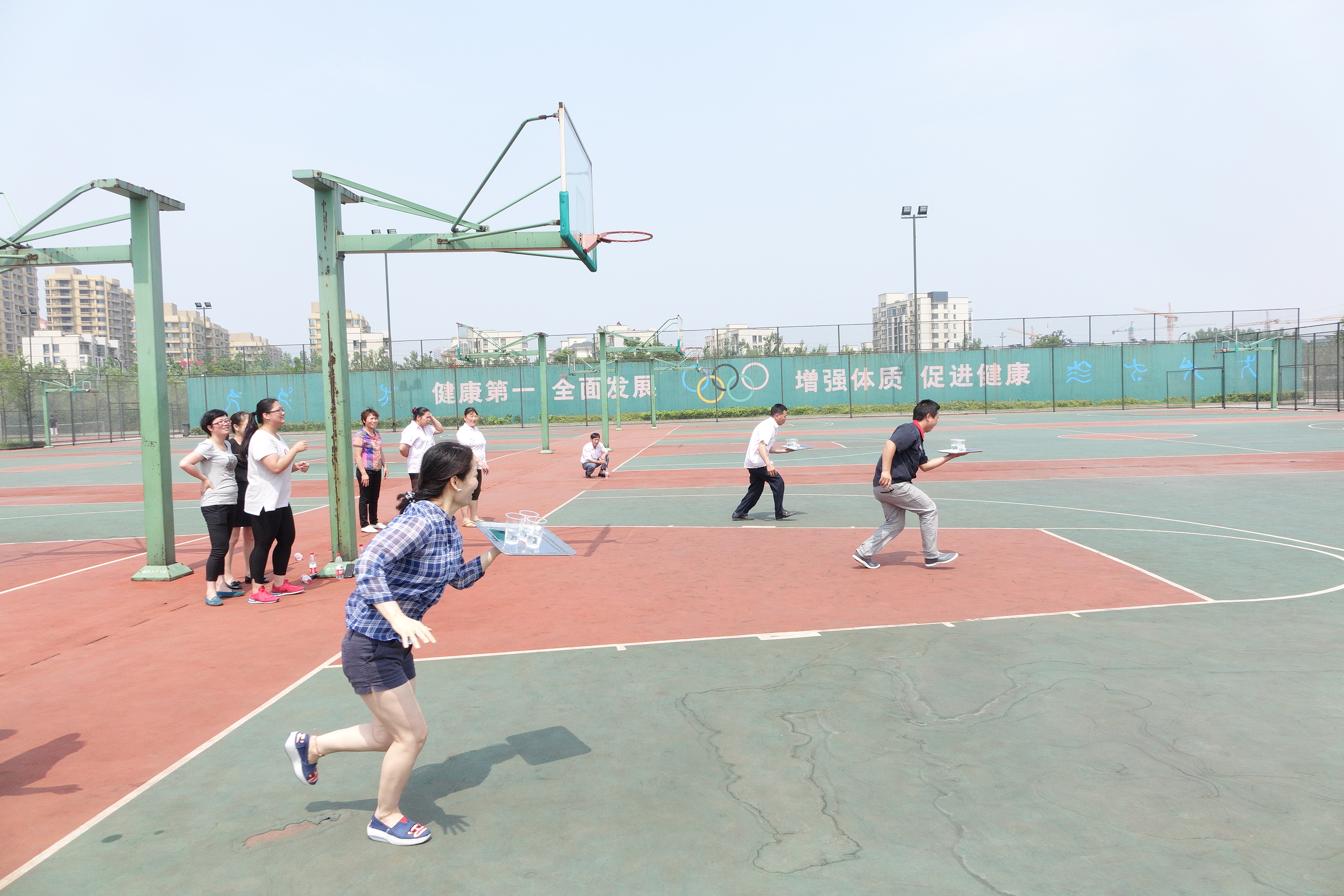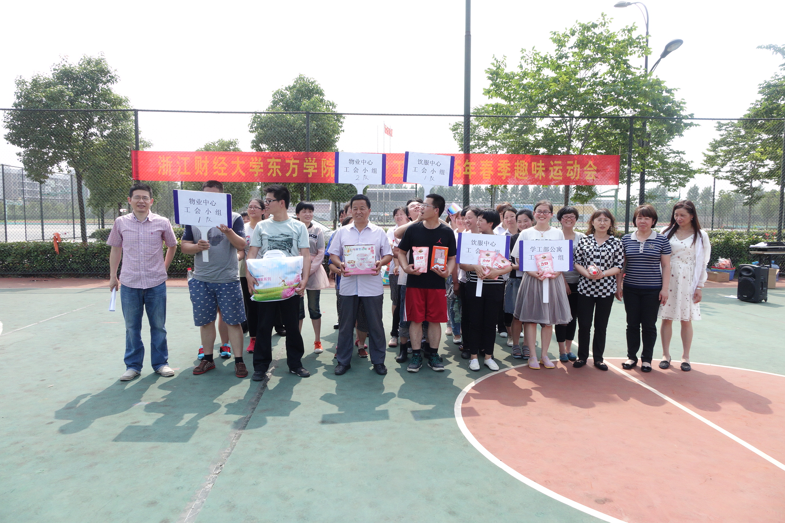 这次活动由东方学院后勤分工会筹备组织,得到了学院工会和分管部门领导的大力支持,得到了后勤各部门职工的积极配合参与。在分工会的精心策划下,物业中心、饮服中心、公寓中心、教学楼管理四个工会小组组成了五个参赛队,在抢收抢种、特色肉夹馍、托盘接力、眼疾手快、同舟共济这五项富有后勤特色的集体竞赛项目上展开了激烈的争夺。虽说比赛是以趣味为主,但这些项目都特别考验参赛队员们的团队与竞争精神,比赛中,队员们你追我赶、协作配合,充分展示了东方后勤职工朝气蓬勃、昂扬向上的精神风貌,更体现了团结协作、互助共进的团队精神,比赛成为增进职工相互交流的平台,比赛成为广大后勤职工积极参与学院发展的助推剂。