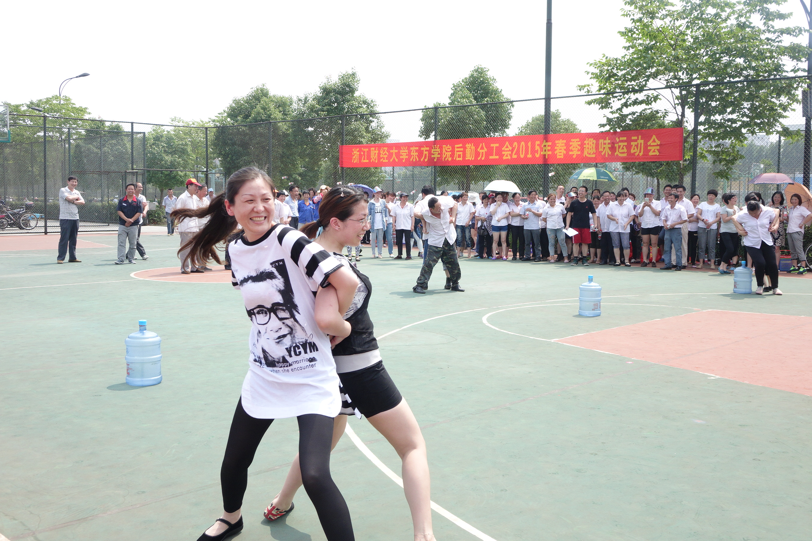 2015年6月1日下午,学院篮球场上气氛热烈,加油呐喊声、激情欢呼声此起彼伏,后勤分工会举办的春季趣味运动会正在如火如荼地进行着。