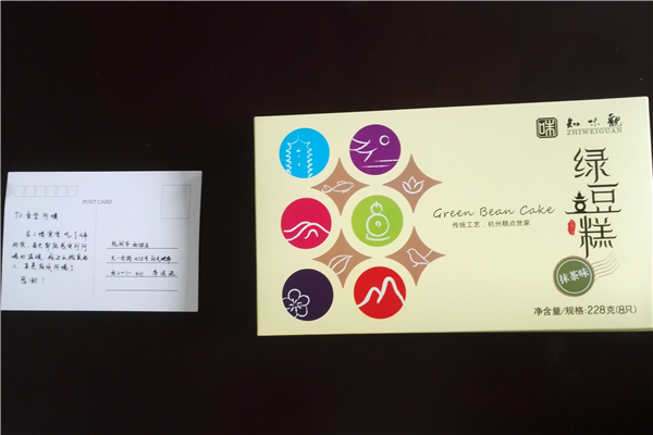6月16日中午11:30左右,一个很平常的开餐时间,由于临近期末,就餐的人员显得稀少,二餐厅的阿姨们不紧不慢地为前来就餐的同学打着饭餐。“阿姨,我这儿有盒绿豆糕给你们尝尝,感谢你们这四年的陪伴!”,这句话与往常听到的“阿姨,给我打份快餐”,是那样的不同,也吸引了我们所有售菜阿姨目光。一位长相清秀的男同学,个子不高,眼睛很大,脸上流露着真诚的微笑。在他手里拿着一盒绿豆糕,盒子上还“躺”着一张明信片。一位阿姨接过绿豆糕,眯着眼睛想从卡片上写的文字里了解这位同学的含义: