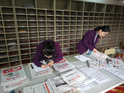此次技能评比分为笔试、实操两大模块。实操比赛要求收发员在最短时间内准确无误的清点出50份报纸,并做好登记;笔试比赛则要求收发员快速写出从订阅的35类报纸、119种杂志中随机挑选出的10种报纸杂志所对应的信箱号和份数。比赛考察的是每位收发员报纸信件分拣的速度、准备性和对报纸、杂志熟悉的程度。在评比结束后,大家就比赛中存在各自存在的问题进行了交流。