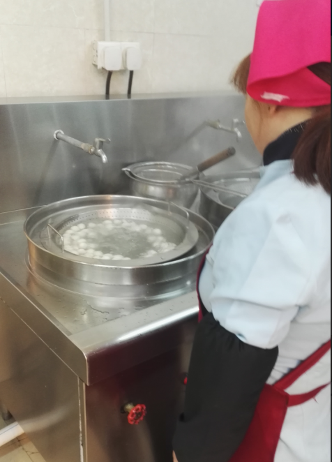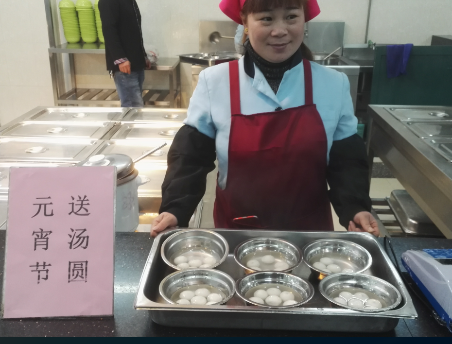 大家彼此送上新年的问候,将餐厅打扫的干净明亮,餐具全部清洗消毒,为师生的到来做好准备。中午时分,在窗口烧上热水,下入汤圆,为前来就餐的教职工送上一碗热乎乎的汤圆,同时也送上这开年工作的第一丝甜蜜。汤圆外表洁白软糯,馅心是香甜的黑芝麻,让我们吃着汤圆,在餐厅相聚。