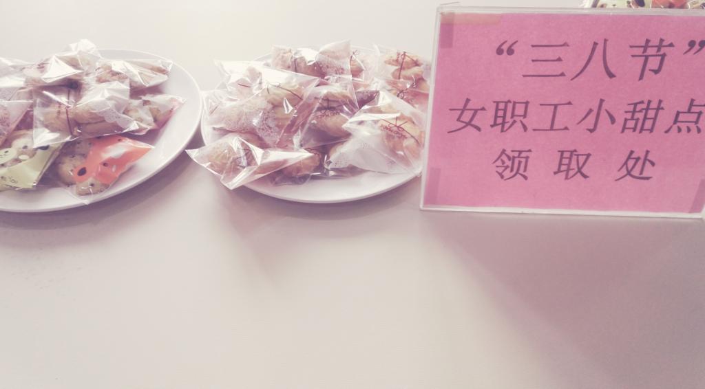 在这个美好的节日里,后勤分工会和学院工会为学校的女职工准备了定制的小甜点,将这份甜蜜送给全院女职工,同时也向每位前来领取的女职工送上节日的祝福。