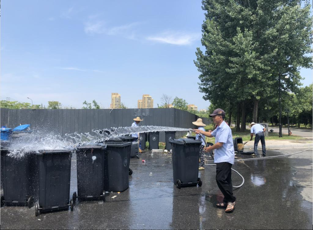 为进一步提升校园环境卫生,改善学生生活区环境质量,创造干净卫生、整洁优美的宿舍区氛围,6月15日,物业服务中心组织开展生活区垃圾桶集中清洗活动。