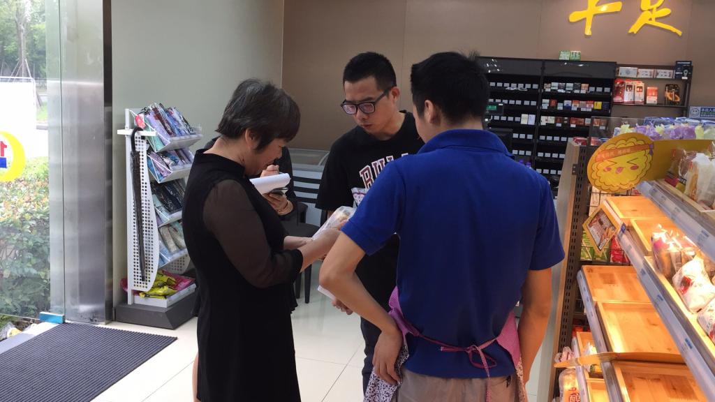 首先检查组对一食堂餐厅的仓库原料进行检查,查看是否有过保或变质情况,其次对冷菜间、食品留样、餐具消毒等重点环节进行查看。检查中,食药监人员着重指出,留样菜肴的克数规定已经从原先的100克提升到了125克,要求食堂员工要保质保量做好留样工作。