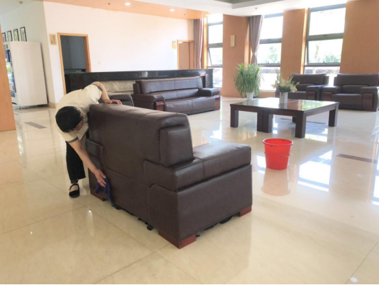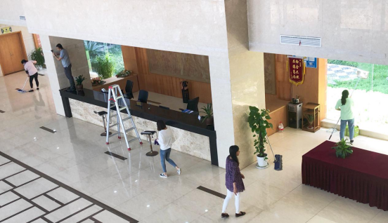 按照本周工作安排,经过工具准备、区域划分、人员分配等前期准备工作,员工们井然有序地投入到各自分配的区域中。大家认真擦拭了一、二楼的大理石墙面、大门玻璃等处的积尘,并彻底清除了沙发底、电梯间等处的卫生死角,打扫的过程是欢快的,大家互相协助、配合默契。经过半天的集中清洁,学术中心一、二楼公共部位焕然一新,玻璃窗变得更加清澈明亮,绿植变得更加翠色欲滴,就连空气也似乎弥漫着清新气息。