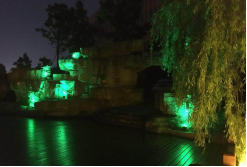 二期工程,九曲桥和学术北假山的亮灯计划,工程总计投入灯带230m、射灯6套,也于今年5月调试完成。