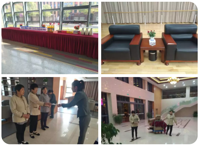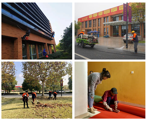 保洁有道,助力院庆。院庆前夕,物业服务中心保洁班组对校园各个角落进行了清扫冲洗,同时做好院庆重点会场的布置、保洁工作。期间更新了影剧院、体育馆、教学楼、行政楼等重点区域的走廊地毯、电梯及大厅地毯,配合做好物资搬运工作,共计搬运桌椅近百套。院庆当天,保洁人员全天在岗、在全院各主干道路、活动会场进行循环保洁作业,确保道路整洁,地面无丢弃垃圾;特别是在上午庆祝大会结束后,保洁人员马上清理会场,为后续活动提供优良的环境保障。