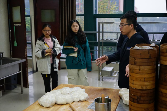 此次活动由饮服中心监控主管沈奇带队,先后参观了洗切加工间、厨房间、米饭生产线、洗消间等重点区块,沈奇向权益部同学介绍了食堂为确保蔬菜无异物残留需要经过先摘、后浸泡、再清洗、然后加工成形的过程;通过查看原料采购清单,对比上半年与下半年的原料价格,分析在原材料普遍上涨的背景下,食堂为确保菜肴价格稳定的坚守与努力。此外针对师生反映菜品单一不翻新的问题,通过每日菜谱与现场菜肴比对来查看食堂每日菜肴的更新变化情况;同时同学们还随机打取快餐,对米饭、菜肴进行称重,由沈奇向大家介绍菜肴成本、售价、重量之间的计算方式,突显学校食堂作为保障餐厅的服务性本质。