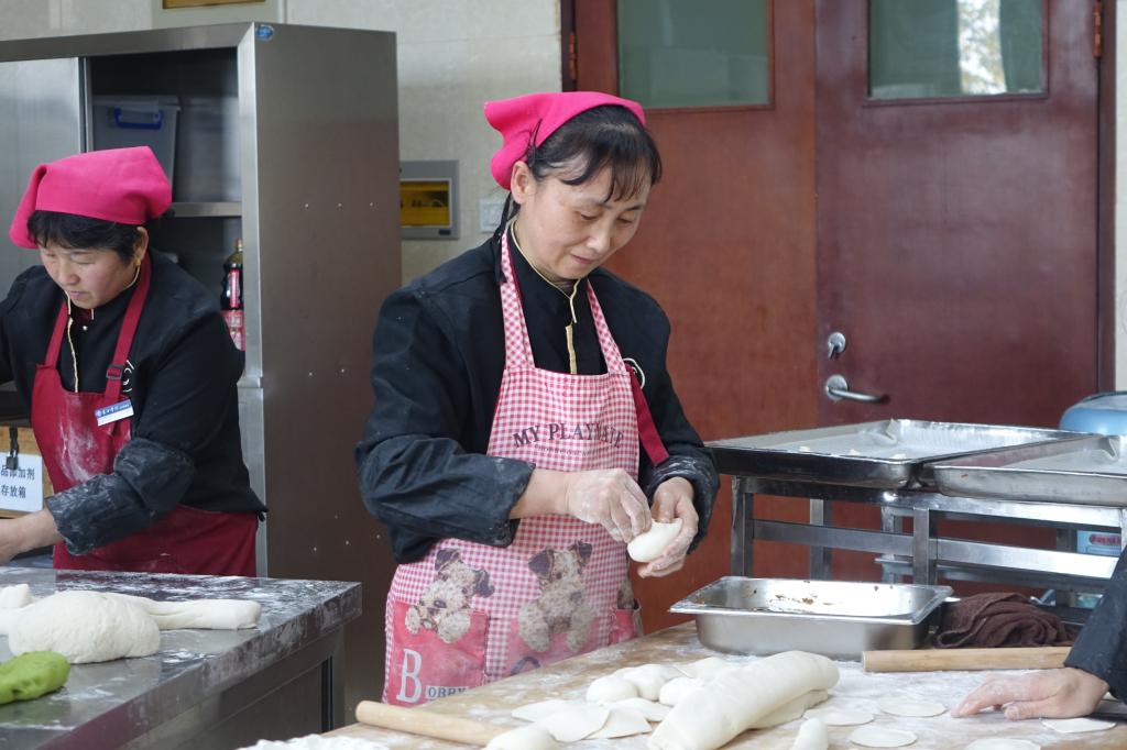 在厨师和面点类技能岗考核中突出创新与变化。面点考核既考验基本功——肉包要求胀发充分,色泽洁白,大小均匀同时有18个褶子,还要求有制作一个自选新品种。厨师考核中在规定主料为草鱼和杀白鸡,要求运用不同加工手法和调味方式呈现多样的菜品。面点比赛中有的选手将紫薯和入面团中,做成双色虎头卷;有的则将面团做成金鱼造型;热菜比赛中有的选手将鱼肉切成夹刀片,里面卷入娃娃菜蒸制,有的则将剩下的鱼骨拍粉炸制,金黄酥脆。