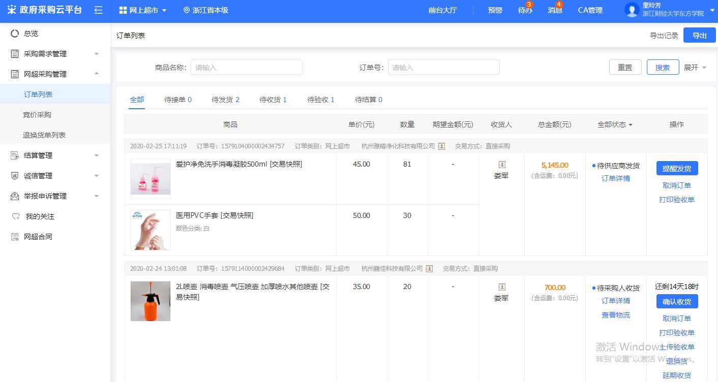 多方筹措,确保供应。疫情发生以来,市场各类防控物资紧缺,医用口罩、额温枪、含氯消毒泡腾片等基本脱销。在此情况下,资产管理中心采购人员加班加点,一方面通过电话、微信、政采云平台等媒介联系杭州、海宁等各大经销商;另一方面与财大本部、海宁市政府、当地医疗卫生等单位联系援助;同时联合校友办等部门,寻求业务单位等部分企业、校友支援。受限于物流影响,学院领导和部门相关人员亲自担负起部分防疫物资的提货和运输工作,确保防疫物资第一时间到达学院指定存储仓库。经过多方筹措,目前基本完成了学院开学前后防疫物资的采购和储备任务。