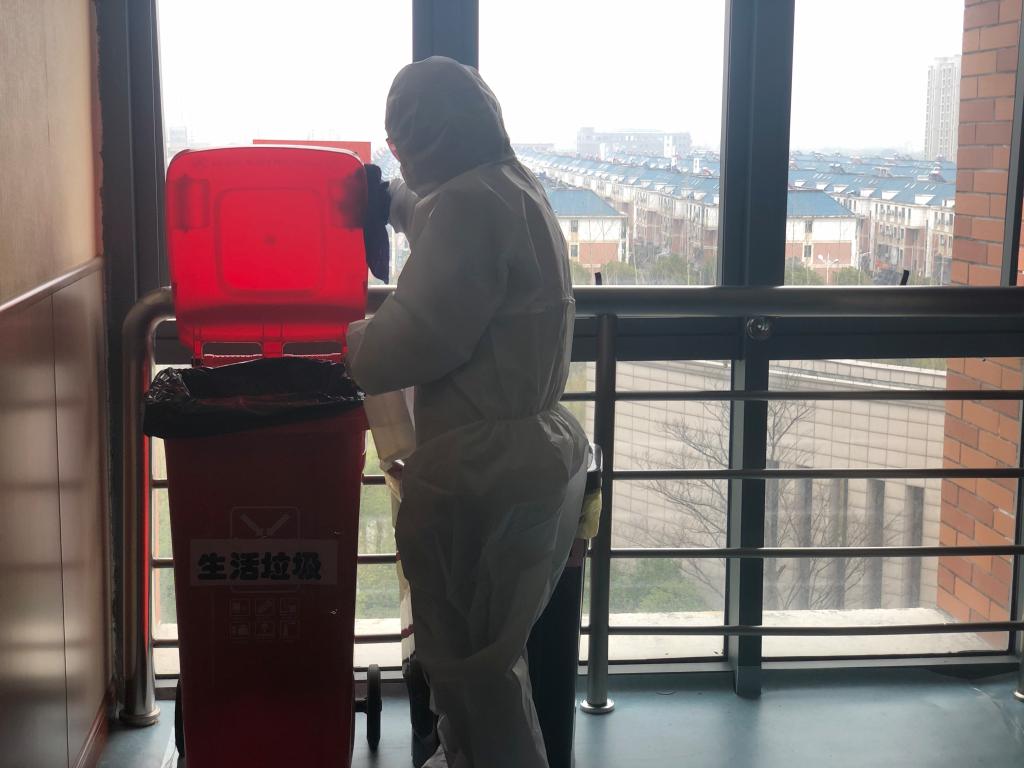 根据《学术中心临时隔离点预案演练方案》模拟演练从“密切接触者入住”、“隔离区域消毒”、“工作人员送餐”、“隔离区垃圾处置”等方面进行了实景演练。演练过程中,工作人员服务小组、保洁服务小组、饮食服务小组等相关工作人员的防护措施完备,各工作小组之间无缝对接,反应迅速、组织有序、操作规范,达到了预期效果。在模拟演练前,张媛媛从防护服的穿戴、消毒水的配比、隔离点垃圾的处置等方面进行详细的讲解。演练过程中,范振远对隔离区存在的问题(如:隔离区消毒、隔离区垃圾分类处置)给出了相关的详细指导建议和改进措施。演练结束后,经营发展中心对隔离区存在的问题及时作出调整和完善。