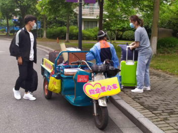 关爱学生,爱心接送。由于疫情原因,学生家长车辆无法进入校园,考虑到学生行李沉重,物业服务中心安排专车为学生提供运送行李服务,全力为返校学生提供便捷的物业服务。