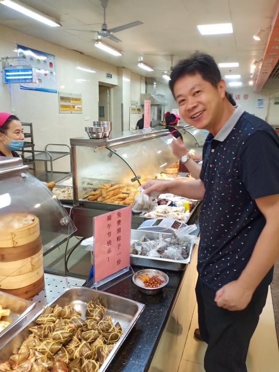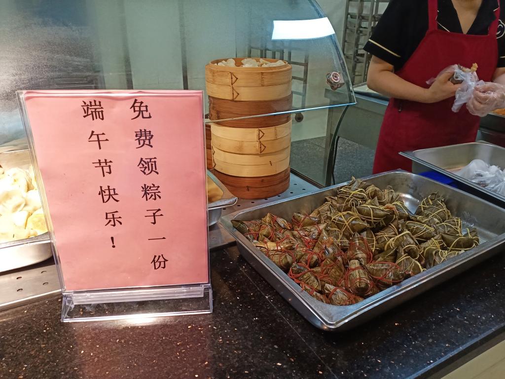 6月24日上午,各餐厅给每位就餐者送上一甜一咸两个粽子,提示大家端午节即将到来。而在中餐时段,“五黄”菜肴隆重登场——“炝黄瓜”,爽脆可口;“椒盐小黄鱼”,外脆里嫩;“韭黄蛋饼”,香气四溢;“蛋黄南瓜”,香酥绵软;而作为压轴登场的“胡辣鳝丝”更是海宁本地的特色菜肴,鲜甜适口、脆嫩相宜。