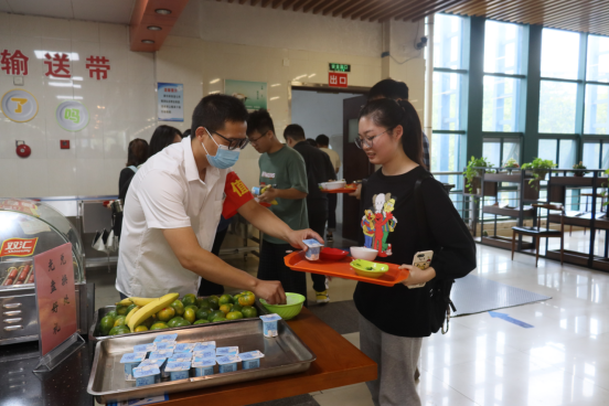 新生第一餐,等你来光盘。报道日当天,饮食服务中心在做好全院师生就餐保障的基础上保质保量地推出了东坡肉、吉士虾、糖里几等“十大最愿意光盘的菜肴”;还开展了光盘赠好礼活动,只要光盘就能收到饭后点心水果或酸奶,积极宣传节粮教育,努力上好新生光盘行动第一课。
