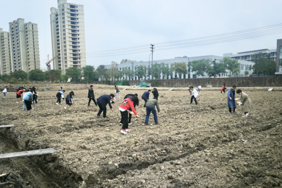 三方签约、揭牌仪式结束后,农科院科研基地专家张尧锋带领师生开垦土地、施肥料和播撒油菜花种子,使师生在劳动实践的过程中贴近自然、体验劳动的快乐。