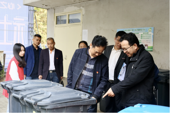 督导检查会结束后,与会领导、专家实地检查了学院行政楼办公室、校园公共空间、学生寝室垃圾投放点、学生食堂、教学区垃圾转运点、教学楼等有关区域垃圾分类工作开展情况。