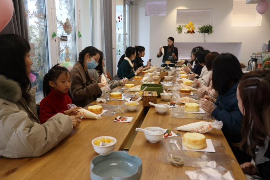 烘焙活动伊始,烘焙老师向大家讲解了烘焙知识、蛋糕的制作步骤和要领。大家仔细倾听,认真揣摩,熟悉材料、工具后,大家在烘焙老师的示范和指导下,自己动手体验。将烤好的圆形戚风蛋糕胚装饰鲜奶油,将各种新鲜水果均匀摆在蛋糕顶部,做出自己喜欢的多变造型。短短的2个小时,经过大家的制作,一个个美观又美味的蛋糕成品陆续呈现在大家的面前。