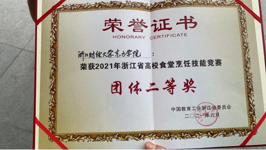 6月26日,学院饮食服务中心主任彭亚东带领谢应灿、韩传杰及代永三人赴浙江工商职业技术学院参加“浙江省高校食堂烹饪技能竞赛”,并喜获团队二等奖。