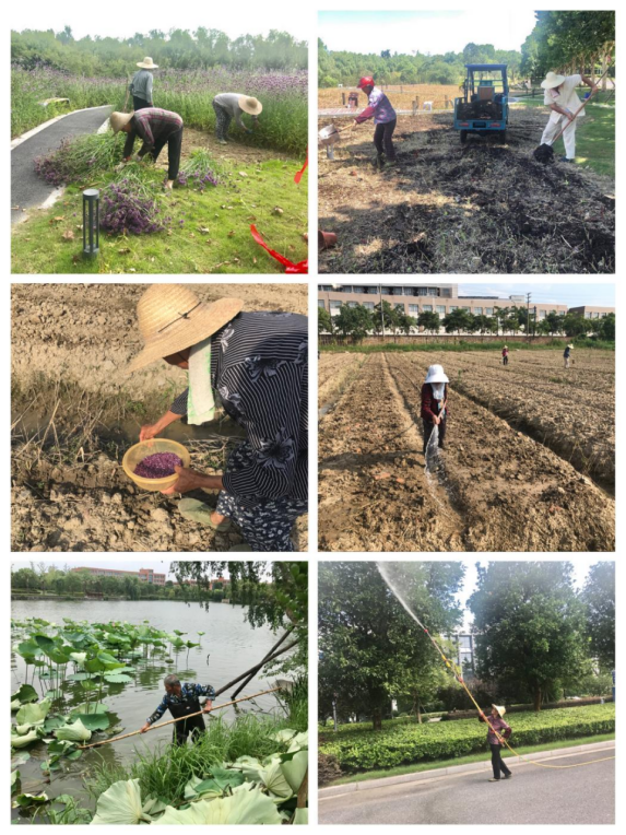 大学生劳动教育基地向日葵种植项目历时6天半完成种植、除草、防旱工作;季向性花卉清理马鞭草,翻土除草、施有机肥,二期种植计划认真落实中;景行湖荷花修整、校园树木防旱、农药除虫,守护校园的花花草草,栽下新学期的惊喜与浪漫。