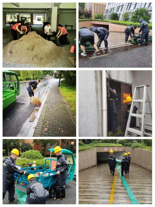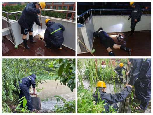 积极响应学院防台防汛应急工作,与“烟花”对战的四天三夜。装罐的是沙袋,垒放的是护堤,白天清理雨水井,全面排查楼宇、配电间、地下车库、楼宇顶层等重要部位,夜里查天沟探水位,扎扎实实做好一线防汛防台工作,他们是有担当的物业人,也是有组织的防汛小分队。