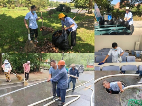 保洁班组9月1日起开始对教学区、办公区进行全面的清洁和消杀,针对学院落叶较多的区域组织人员进行突击清扫,加强学院马路、雨棚等处的冲洗,努力创造安全、干净、温馨的学习和办公环境。