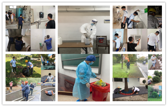 9月1日到9月12日,从开学前的疫情应急防控演练、校园环境卫生保洁与消杀、绿化美化、校园设施设备检查、水质检测到报道日的爱心车、新生报修点、行李搬运等,物业服务中心早计划、早到岗,认真做好各项新学期物业保障工作。