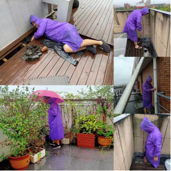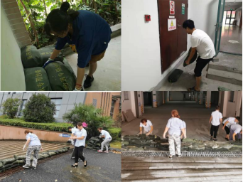 当台风与开学季相逢,12日晚保洁班组连夜“拔营”,将迎新所用的近170个帐篷、230张桌子、近500张椅子搬进仓库,并备好防汛物资。13日,维修人员做好各配电间的巡查工作,检查学院落水管道,并联合业务单位对学院各处天台、天沟进行检查及清理,确保排水设施的正常运行。保洁班组在地下车库入口、低洼地等处放置沙包,防止雨水倒灌。