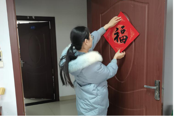 最后王晓玲老师和童晓波老师将一个个福字送到大家手上。一幅幅包含着真挚的“福”字感受到了浓厚年味和学校的关怀,把承载着浓浓年味、深深祝福的“福”带回了工作岗位,带回了家。