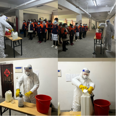 物业服务中心提前做好消毒用品、口罩、防护服等防疫物资的储备工作,确保物资充足,助力开学防疫工作。2月13日,物业服务中心保洁班组开展新学期防疫消毒演练,常学常新,带领保洁员们重温防疫知识,更好地做好基础保障工作和自我防护意识。