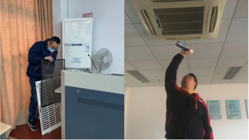 绿化班组清理人工湖漂浮物,确保湖体生态卫生。保洁班组清扫绿化带、死角的落叶,冲洗路面,确保校园整洁、干净;认真做好教学楼、卫生间、死角等区域的保洁、预防性消杀工作;维修班组细致做好教学楼、图书馆等地空调出风口的消毒、滤网清洁工作,积极做好疫情常态化防控工作。