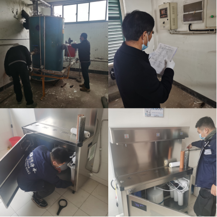 全面做好学院开水箱、直饮机等饮水设备检修工作,做好开水箱的内外清洗及净化棉的更换、直饮水机维保工作,完成生活区、教学区水质检测工作,保障师生饮水安全;完成锅炉、太阳能、电梯、无负压水泵等动力设施设备的检修保养;维修人员加强灯光设备、桌椅、路面等检修工作,为顺利开学做好充分准备。