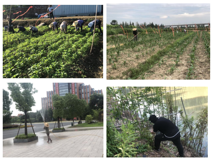 酷暑难挡,校园绿化、基地秧苗、小菜园防旱等夏季守护工作迎来艰巨时刻。大学生劳动实践教育基地6月中旬已完成22亩秋季农作物种植迎来茁壮生长期。人工除草、浇水、防虫、松土工作须定期安排,耗时长费人工,但在物业服务中心绿化班组的不间断的付出下,基地一派郁郁葱葱;东方小菜园作为今年上半年的“香饽饽”,暑期里加固河边护栏、修剪蔬菜作物、浇水防干旱等工作稳步进行;季向性花卉一期花海场地清理,拆除护栏、清理马鞭草花秆,农药除草、翻垦土地,预计8月中旬开展秋季花海播种工作。