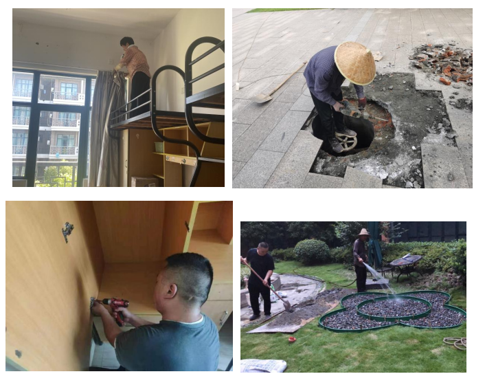 护航新学期,物业服务中心各班组齐头并进地开展工作:2号和3号学生寝室楼配电房维修和代运维前设备巡检,助力校园安全用电;做好毕业生房间家具维修、淋浴房贴膜、窗帘清洗等保障工作;更换学术中心、行政楼、图书馆等地的总水管阀门;粉刷影剧院、教学区域等墙面,做好空调维修、更换消防管道保护膜;近两百棵法国梧桐加装防台支撑钢管;行政楼内庭院休闲座椅地面硬化,提升庭院美观度。