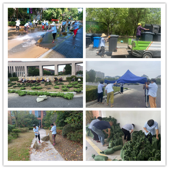 马路冲洗、生活区垃圾桶清洗、室内除尘保洁、地下车库大扫除……物业服务中心对教学楼、行政区域以及生活区等进行全方位的环境清扫;更换绿化带草花、修割草坪;提供办公区域绿植租摆服务,点靓校园环境,用整洁明亮的校园环境迎接师生的到来。