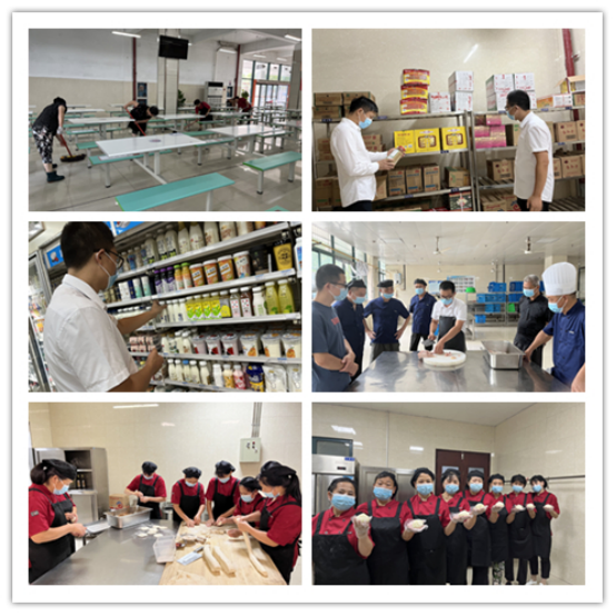 8月25日,饮食服务中心所有员工对一食堂进行全面清洁、消杀,确保新学期就餐环境干净、整洁、卫生。8月31日,饮食服务中心对所有仓库进行检查,确保所有原材料存放环境整洁卫生,所有原材料新鲜、安全;并组织人员前往十足、二食堂、面包房进行开学整体检查,确保外包单位操作区、就餐区干净整洁,满足师生就餐需求。