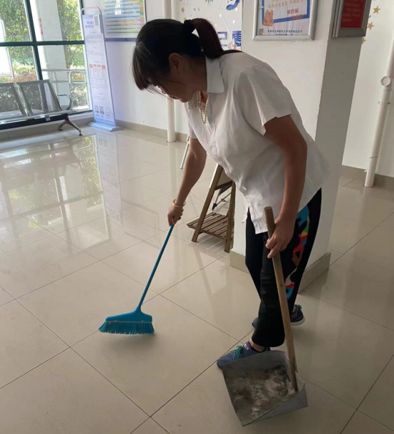 公寓小组员工将爱国卫生运动与常态化疫情防控紧密结合,人员分工明确、配合默契,大家发扬吃苦耐劳的精神,全面做到清扫消毒不留盲区。