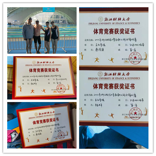 2022年浙江财经大学教职工游泳锦标赛于10月12日在浙江财经大学游泳馆落下帷幕,部门蔡祥英、祝月平两位老师参加了本次比赛,并荣获女子50米自由泳第二名、男子50米自由泳第三名和50米双人拖带第一名的好成绩。(文:杨洁)