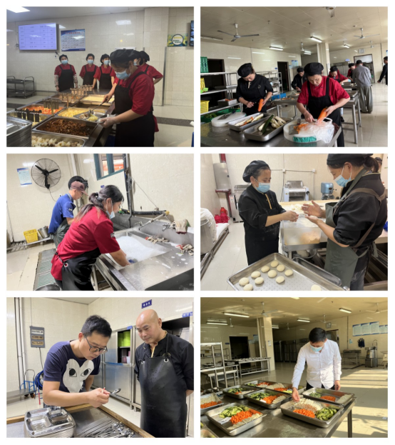 为夯实技艺技能、提高校园供餐者的业务能力,提升员工规范化和标准化操作能力。后勤基建部饮食服务中心对全体员工开展技能考核。