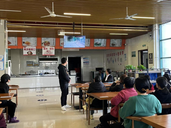 监控主管沈奇讲解了近期一起舆情事件,员工的一个不规范操作被同学发现并上传网络,对中心形象带来很大的负面影响。通过监控视频回放告诫大家,在窗口服务过程中每一个细节都会成为被服务对象的考察标准,只有一切按照规范操作,按照制度要求办事,才能将微笑和美味留在师生心中。