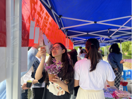 “今天旧物换套圈圈的游戏很有意思,既参与了资源再回收,又套中了绿植为地球添绿,很有意义。”“科普到了低碳环保知识,以后也会多关注地球,参与低碳环保。”“活动很丰富,我和室友不仅清理了不需要的旧物,又参与了保护地球,特别开心。”