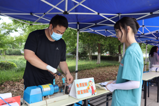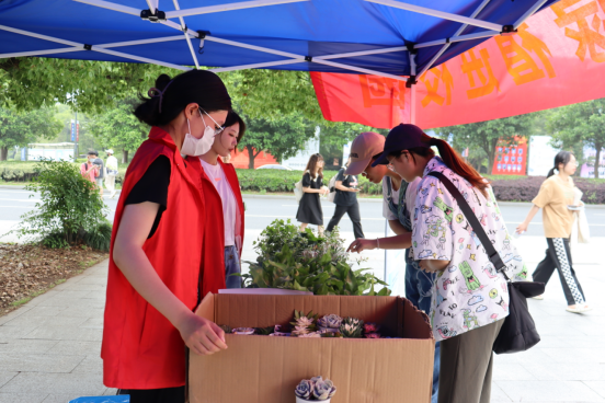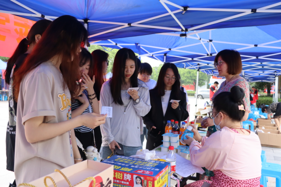 活动以师生需求为出发点,以集中设点的形式提供义务配置钥匙、制作网线、维修小家电、毕业季旧物消消乐、旧手机回收便民服务,以及图书、花卉、邮品等优惠促销活动。“超级环保侠,我们在行动”活动吸引了不少学生DIY环保布袋、环保团扇;节水知识宣传点,志愿者们主动上前宣传节水小知识;绿植展销摊位,罗汉松、蕨类、常春藤、多肉等绿植,吸引了爱花草的师生们纷纷前来挑选。饮食服务中心更是把“菜篮子”搬到了现场,经济美味特色小吃,水果黄瓜、小番茄、西瓜等水果,粽子、米、油等产品一应俱全。