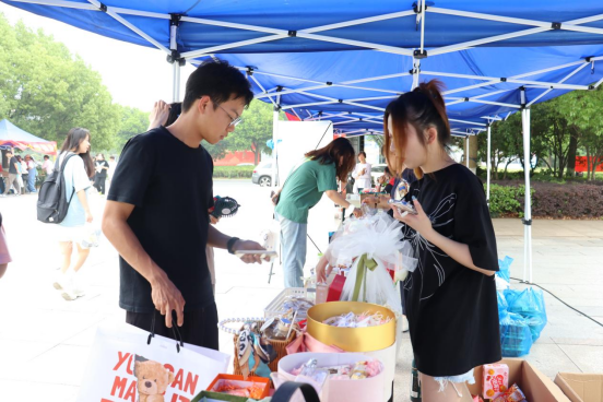 活动由三个部分组成。“反餐饮浪费知识有奖问答”摊位前聚集不少来问答的师生,通过问答的方式,加深师生对爱粮惜粮的理解和认知,从而更好地实践“反餐饮浪费”;“农产品展销摊位”上,品尝新鲜美味农产品的师生赞不绝口;“花浔禧礼伴手礼摊位”前,迎来一批挑选伴手礼的师生,毕业季来临,为他们在意的人送上一份暖心祝福。