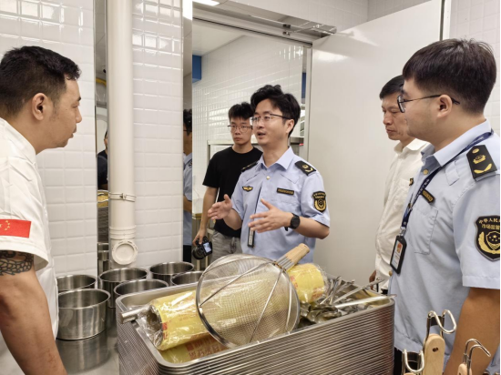 9月7日,海宁市市场监督管理局长安分局副局长陈迪一行人来学院餐饮单位进行食品安全检查,后勤基建部饮食服务中心主任彭亚东陪同检查。