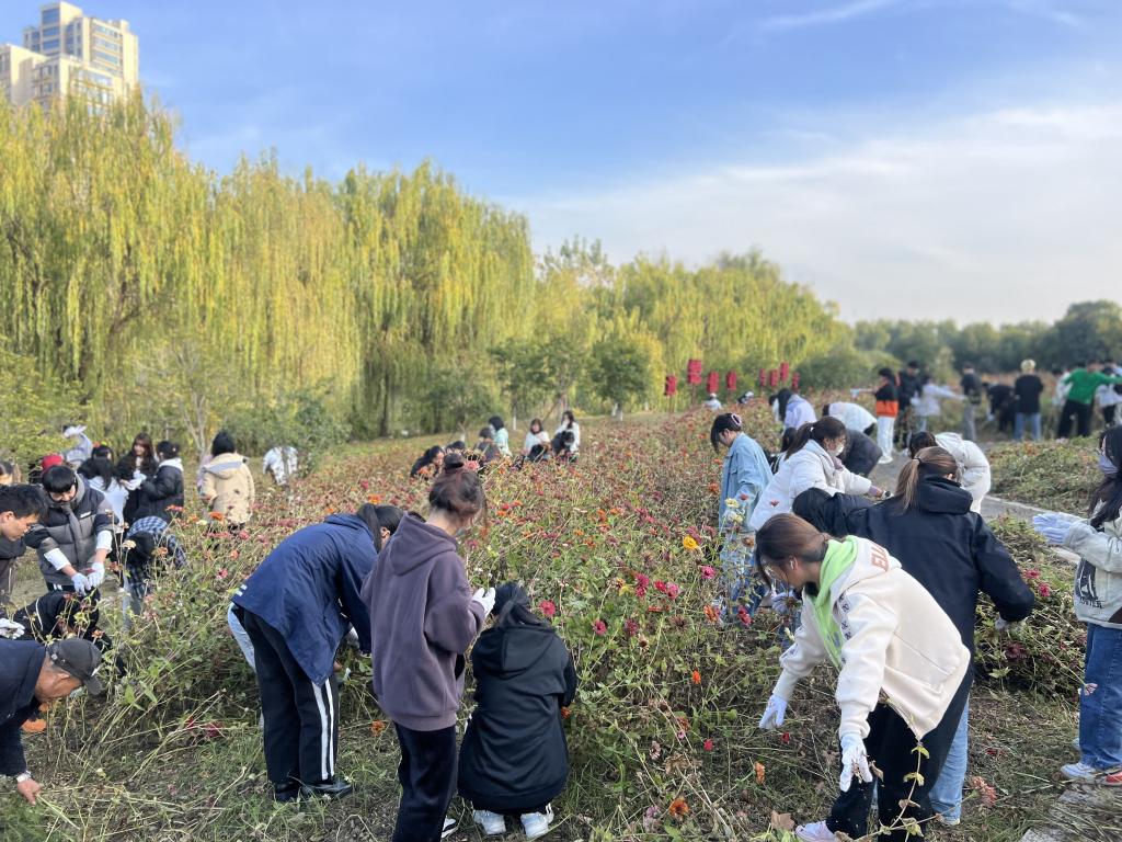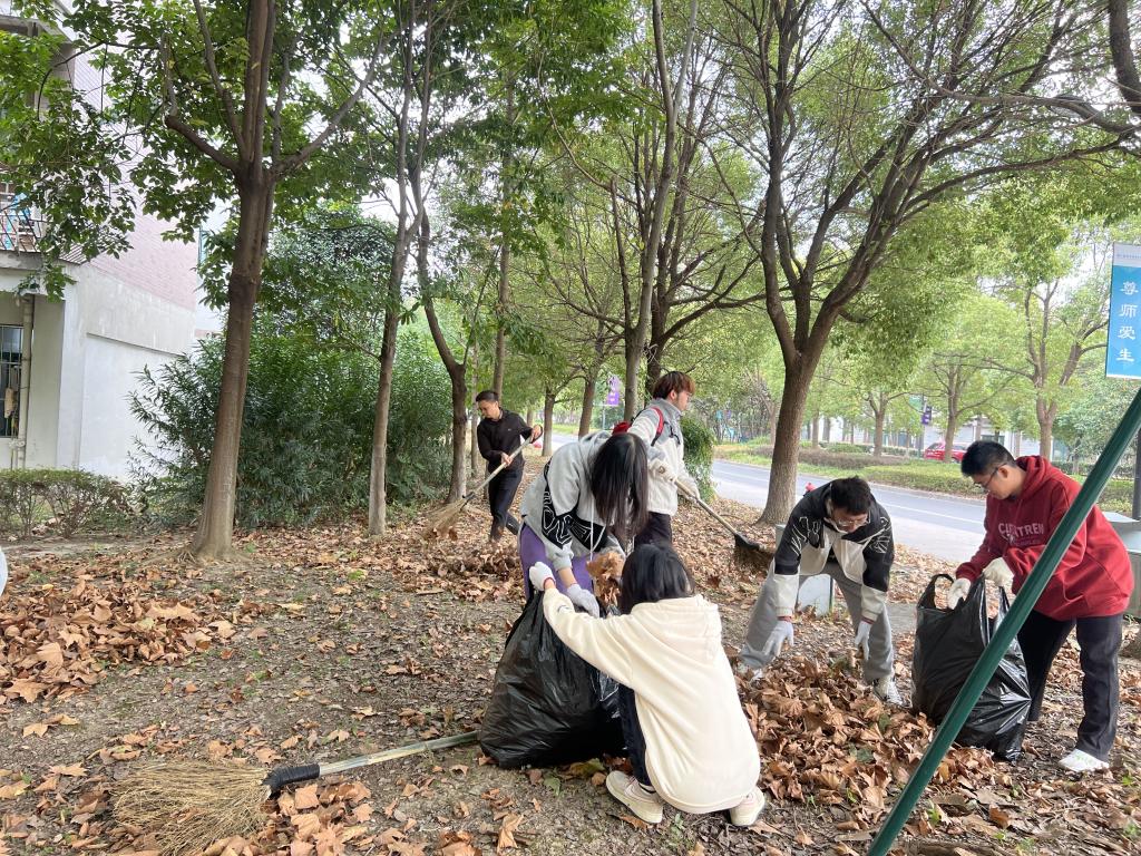 秋冬扫落叶、清理季象性花卉,守护校园环境,让学生参与到校园保洁、绿化工作中,切实体会劳动的艰辛。“秋季过后,树木开始凋零,减少养分消耗可以确保主体顺利度过寒冬”“草花的一生很短暂,这一期的百日草花海从播种到枯萎,只有短短的三个多月......”工作人员在劳动中为学生们讲解校园内的植物小知识、校内花海打卡点的种植规律等,切实感受生命的律动和大自然的奇妙。