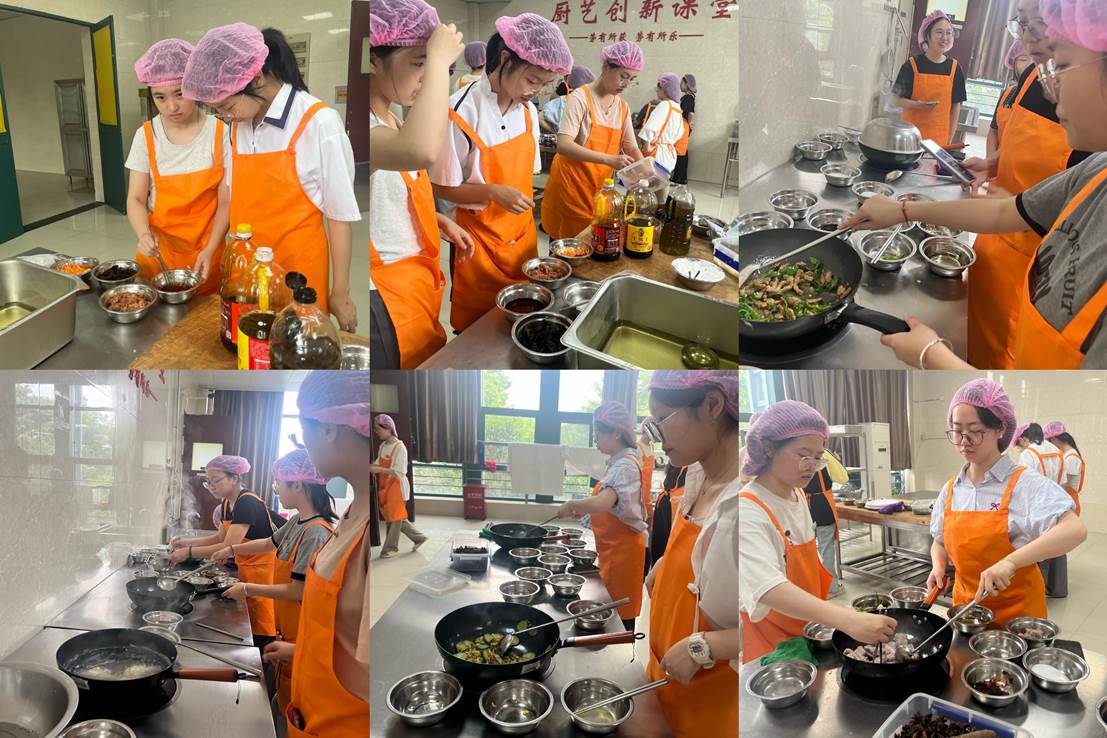 在烹调过程中,现场热火朝天,同学们不畏油烟、积极创作,完成一道道菜肴,纷纷表示“烹饪不易、妈妈非常辛苦和伟大”。