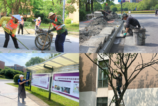 后勤基建部物业服务中心各班组积极响应号召,共同参与爱国卫生运动,雨水井清淤、积水区域增设雨水井、主干道行道树枯枝清理、宣传亭冲洗、集中性清扫落叶、天台天沟清理等。经过工作人员的共同努力,校园环境焕然一新,整洁有序。