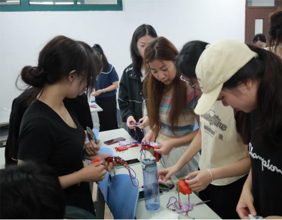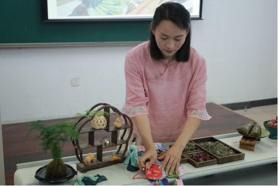 活动当天,后勤基建部物业服务中心邀请国家高级注册花艺师龚敏担任香包制作、艾草花束DIY的指导老师。龚敏先从端午的风俗习惯、香包的佩挂方式、香囊中的各式香料、艾草花束的寓意传递浓浓端午情。在制作环节,同学们兴致满满,精心辨别各色香料、挑选自己喜欢的气味、调配合适的配比,认真完成了近80个香包制作,用自己喜欢的花材制作创意十足的艾草花束。
